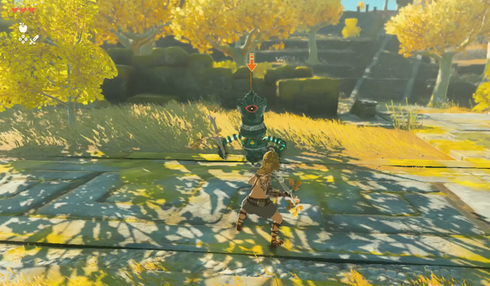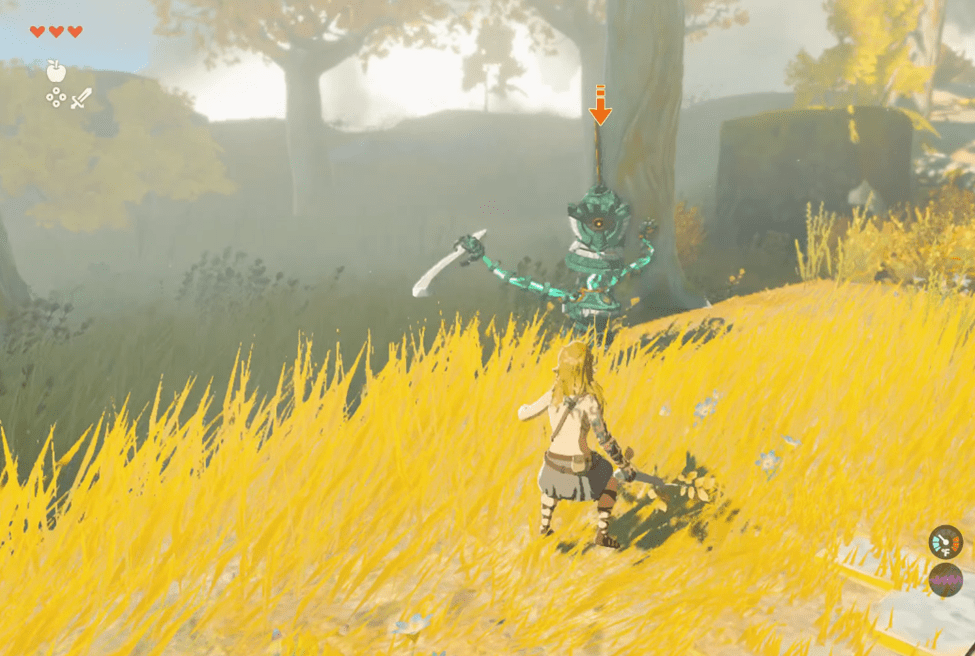 You’ll hear a peculiar sound as you make your way up the stairs after picking up that sweet, sweet Skyshroom. You’ll see a creature rushing to “hug” you. It wouldn’t be a Legend of Zelda game without something weird attacking you, right?