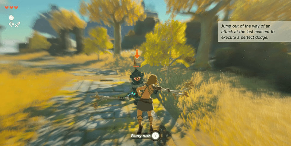 Fortunately, you have your trusty tree branch to help you fend off this creature. Of course, it decays almost immediately, so you’ll need to learn how to dodge. Jump out of the way of an attack at the last moment to execute a perfect dodge.