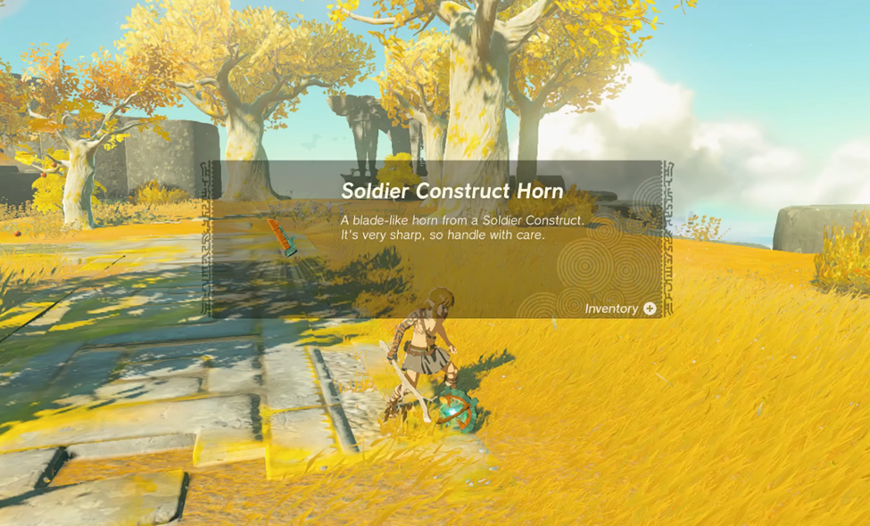 Pick up the stick and some nearby Skyshrooms for health, and examine a construct nearby.