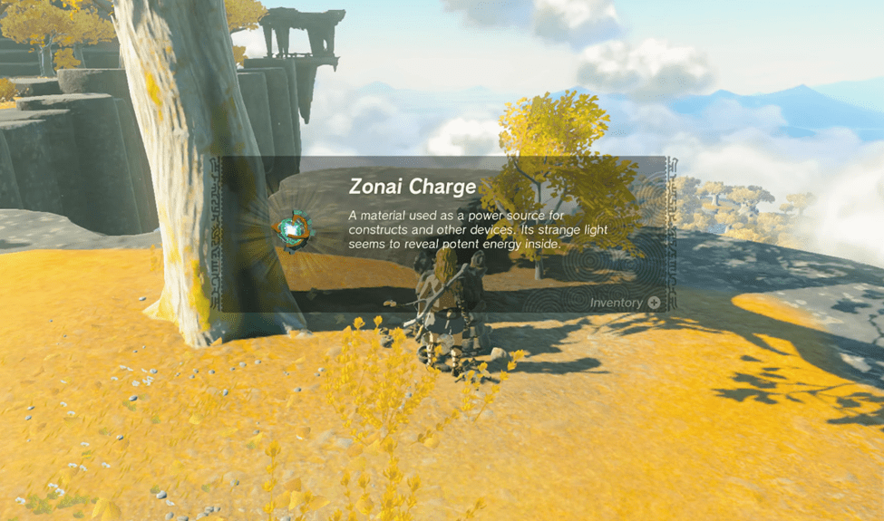 After using multiple tree branches to defeat the creature, you’ll pick up a Zonai Charge, a material used as a power source for constructs and other devices. Its strange light seems to reveal potent energy inside.