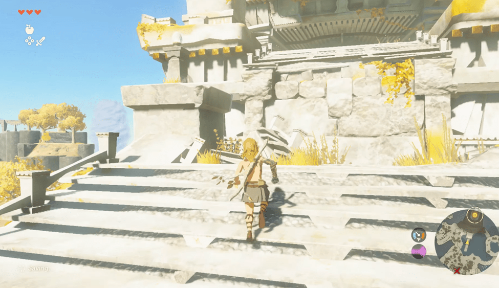As you make your way to the temple, you might get a bit side-tracked. You’ll see another small structure with a chest. Trying to sprint and jump to it doesn’t work. You’ll have to come back later.