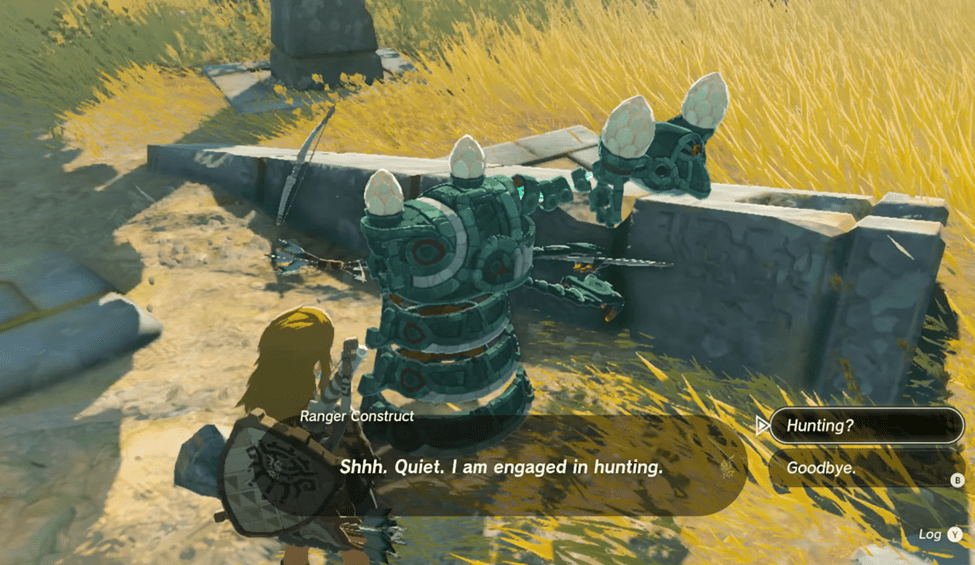 After crossing the bridge to another island, you’ll find a Ranger Construct hidden behind a fallen pillar, talking about hunting wild creatures. The fact that there are still friendly constructs giving you tips on the basics of Tears of the Kingdom means you’re not quite out of the tutorial phase yet. When it comes to hunting in Legend of Zelda: Tears of the Kingdom, one of the most important skills to master is the art of crouching.