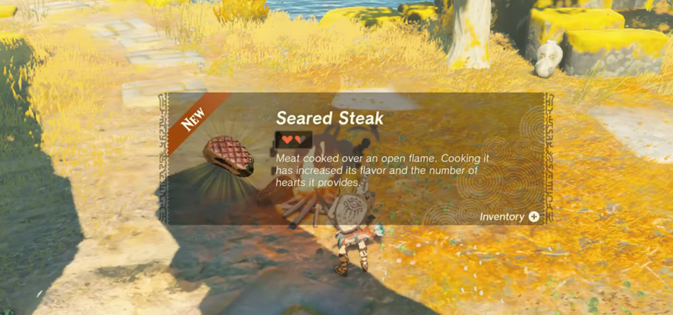 Once you sear the steak, then you’ll see that it recovers a heart and a half as compared to just one heart.