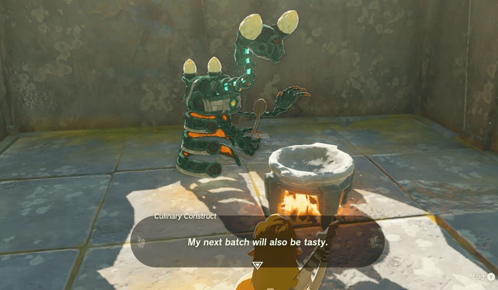 Break a couple of vases and pick up more sticks along the way to a nearby Culinary Construct who was too busy preparing their next meal for it to notice you. If you didn’t already know already, cooking in Breath of the Wild is as easy as holding the ingredients in your arms and throwing them into a pot over a lit fire.
