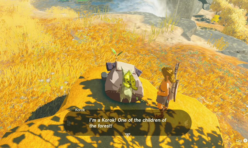 Wander around the area a little more to find a rock with a mysterious bag sitting atop it that introduces itself as Korok. Who is Korok in Zelda: Tears of the Kingdom?