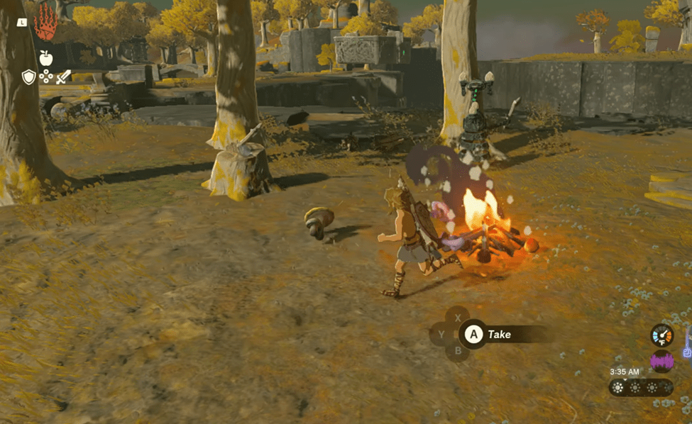 There’s a campfire nearby where you can cook all the shrooms that you’ve picked up since before Ukuoh shrine.